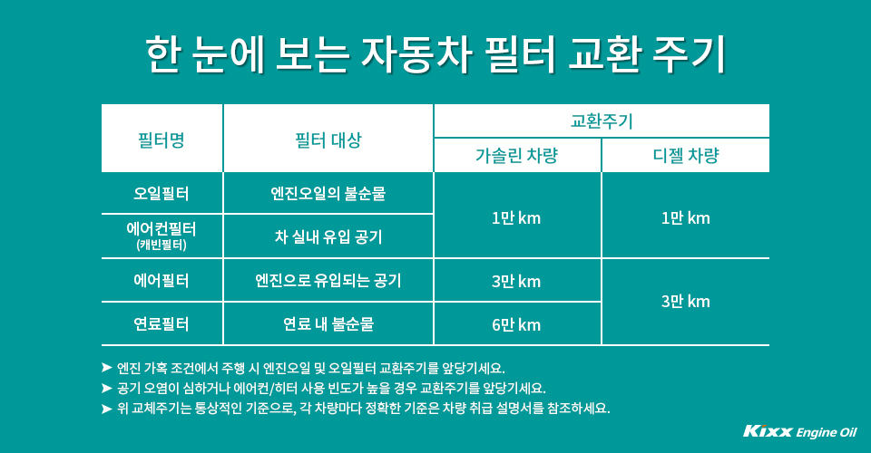 자동차 정비 주기표에 따르면 에어컨 필터는 1.5~2년에 한 번 교체하는 것이 좋습니다. 배터리는 3~5년의 수명을 가지며, 시동 불량을 방지하기 위해 자동차 정비 주기표에 따라 정기적인 점검이 필요합니다. 에어컨 필터와 배터리 관리는 차량의 쾌적함과 시동 성능을 유지하는 데 중요합니다.