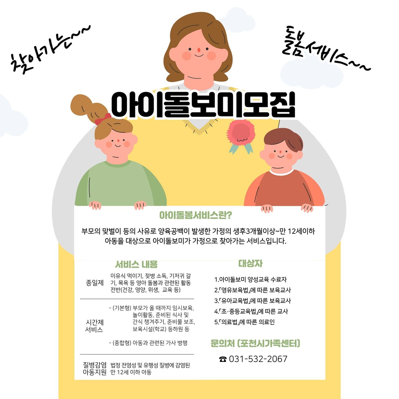 아이돌봄서비스 관련 문의사항은 다음 연락처를 통해 상담 가능합니다: