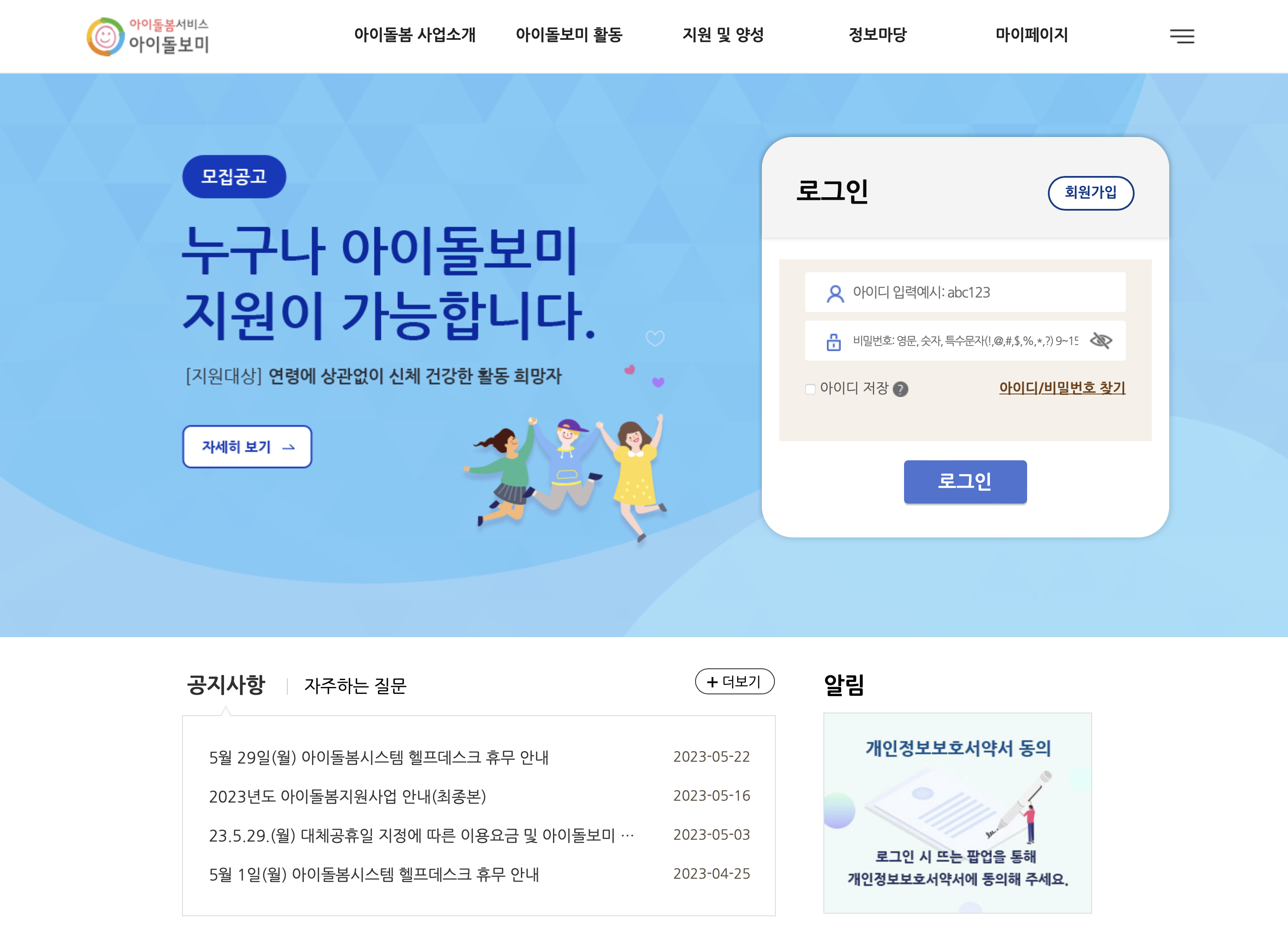 - 아이돌봄 홈페이지 회원가입