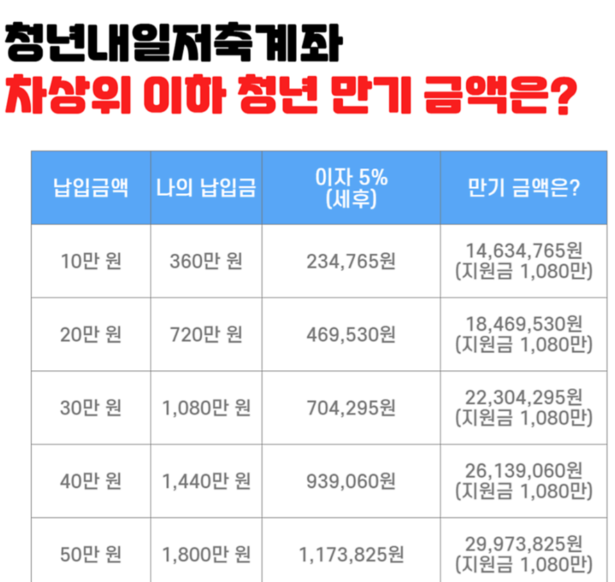 청년내일저축계좌로 모을 수 있는 실제 금액
