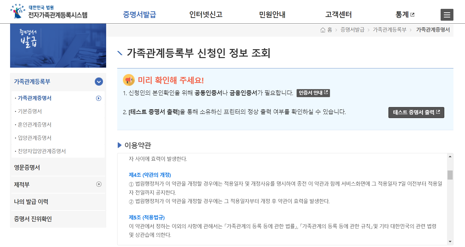 가족관계증명서 발급 시 주의사항