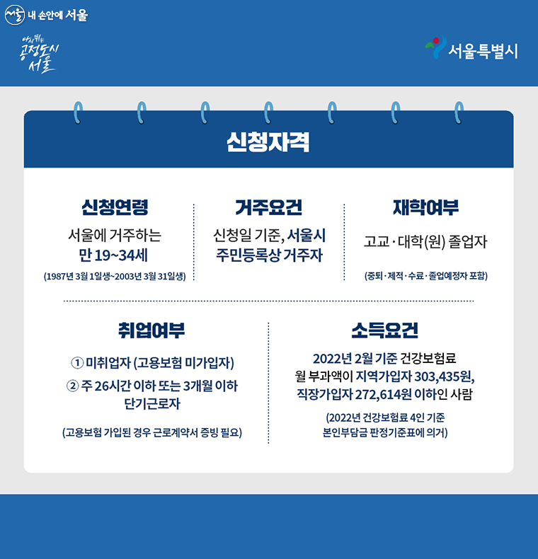서울시 청년수당은 취업을 준비하는 청년들의 든든한 버팀목이 되어줄 지원 제도입니다. 주요 신청 자격을 살펴보면, 서울시에 거주하는 만 19세부터 34세까지의 미취업 청년이 대상입니다. 특히 올해는 1990년 3월 1일부터 2006년 3월 31일 사이 출생자들이 신청 가능합니다.